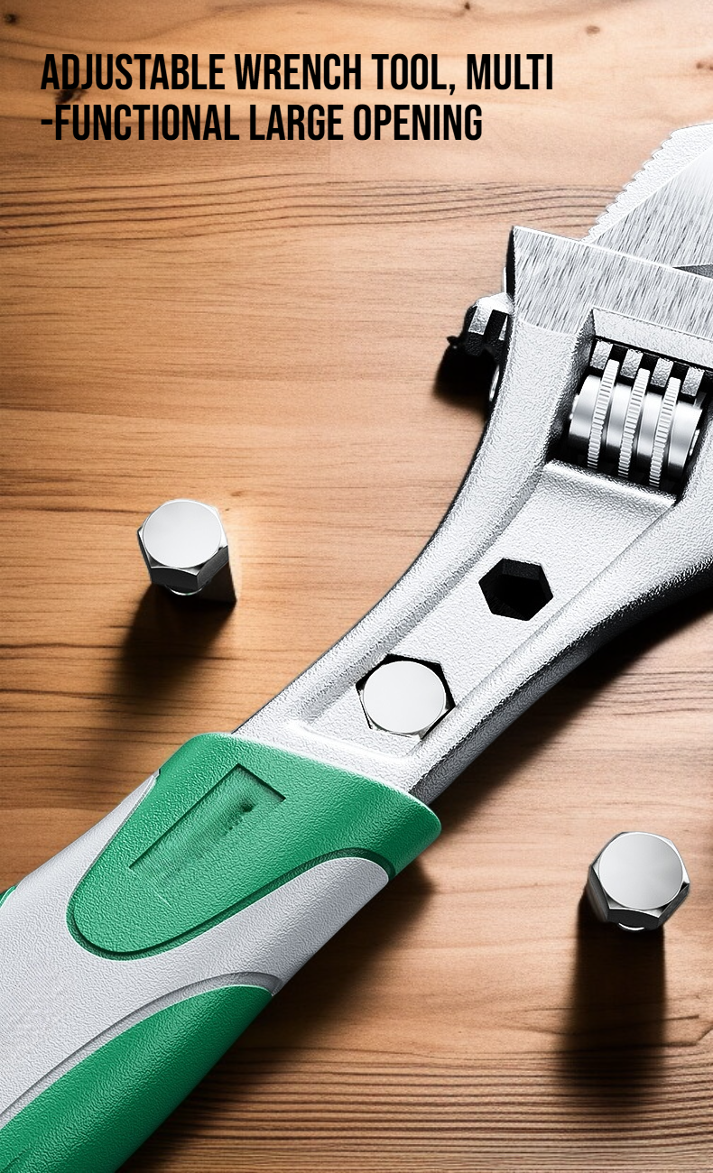 Adjustable large opening fits various nuts and bolts, multifunctional design for versatile use, durable construction ensures long-lasting performance, easy to operate for quick adjustments.